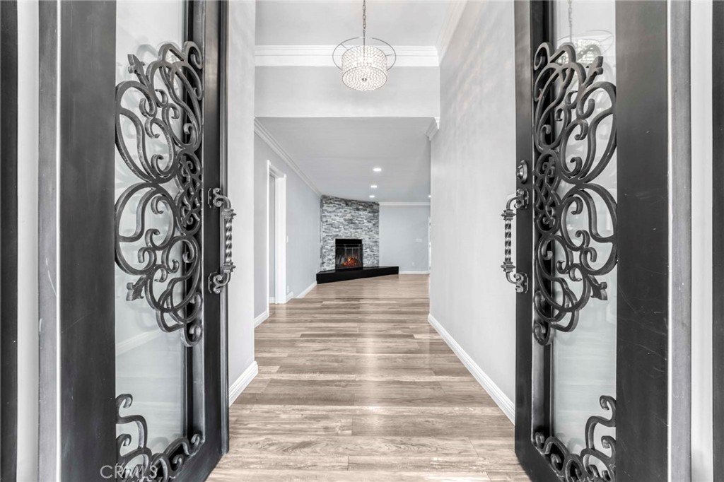 Step inside to an open-concept floor plan featuring a stunning, newly renovated kitchen with quartz countertops and a brand-new stove—perfect for preparing home-cooked meals. The large living room showcases a dramatic floor-to-ceiling fireplace, while the separate family room includes a second cozy fireplace. Both spaces open through elegant French doors to a sprawling backyard oasis.
